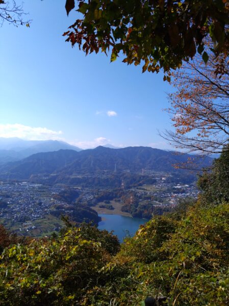 今回の縦走路で1番の展望スポットである見晴台に到着する。津久井湖を前景にして丹沢の山並みが正面に聳え、右端には雪をかぶった富士山が顔を覗かせていた。