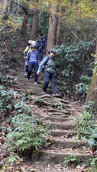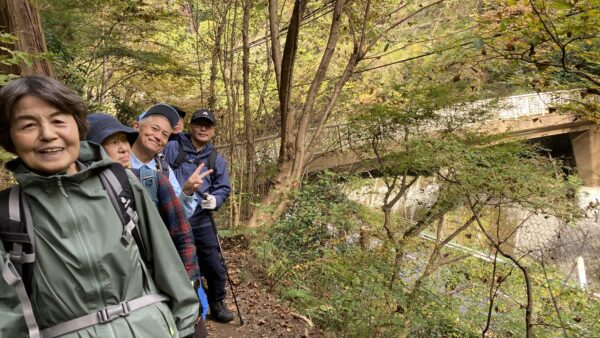 三沢峠に到着。梅ノ木平に向かってひたすら下る。途中に高尾グリーンセンターがあり、施設周辺の森林保全活動を行っている。1時間ほどで梅ノ木平橋に到着、更に30分ほど歩き高尾山口に到着後解散。