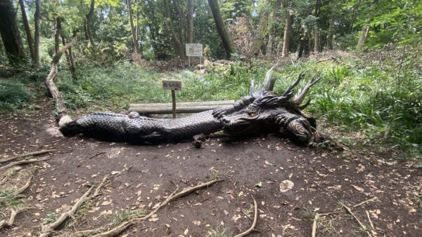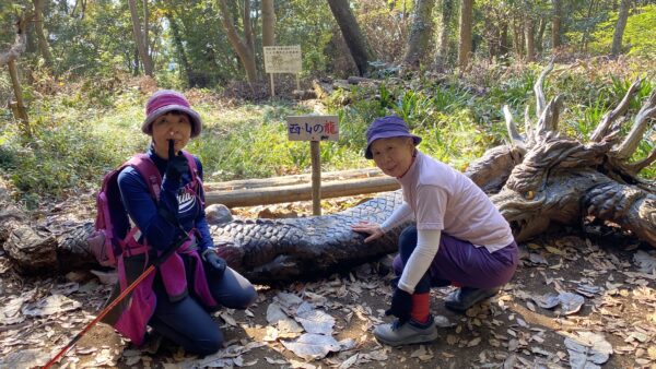 いよいよ今日のメインイベント「西山の龍」に対面する。以前台風で倒れ掛かった木が危険であったため切り倒し、チェンソーカービングで龍を彫ったと言われている。