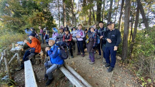 大垂水峠(392m)準備体操9:10…大洞山(536m)9:50…金毘羅山(515m)10:10…中沢峠10:30